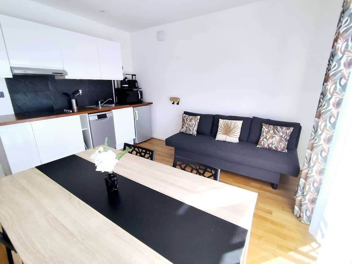 Découvrez ce studio lumineux et élégant, idéal pour un séjour confortable et pratique aux portes de Paris.
