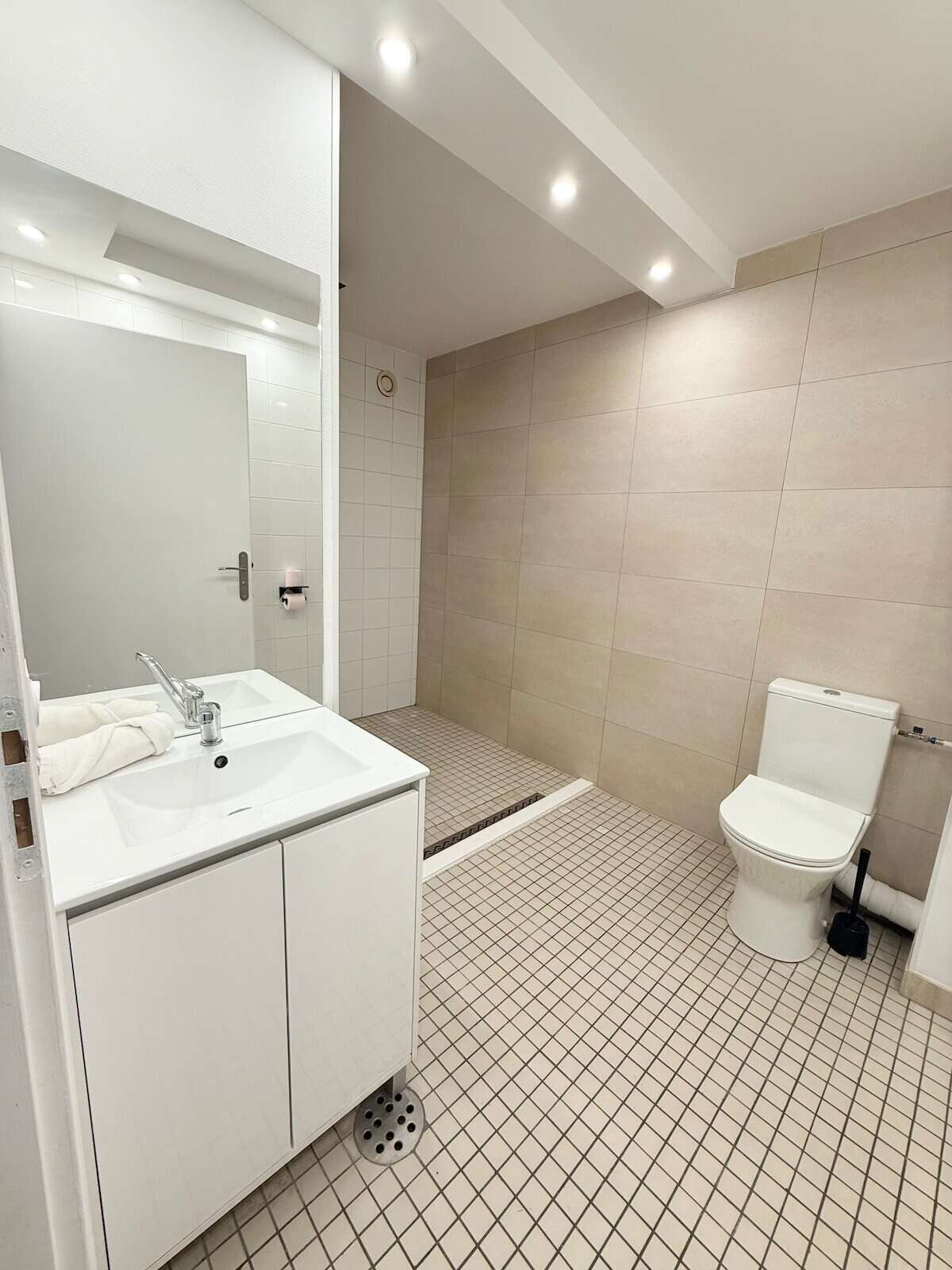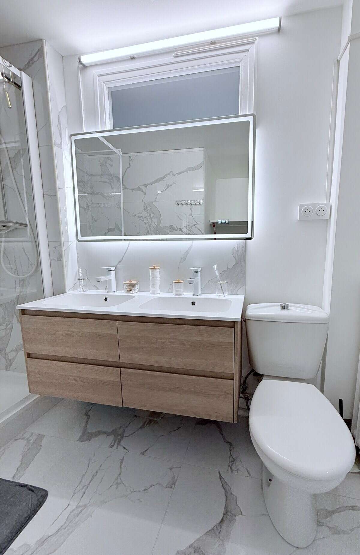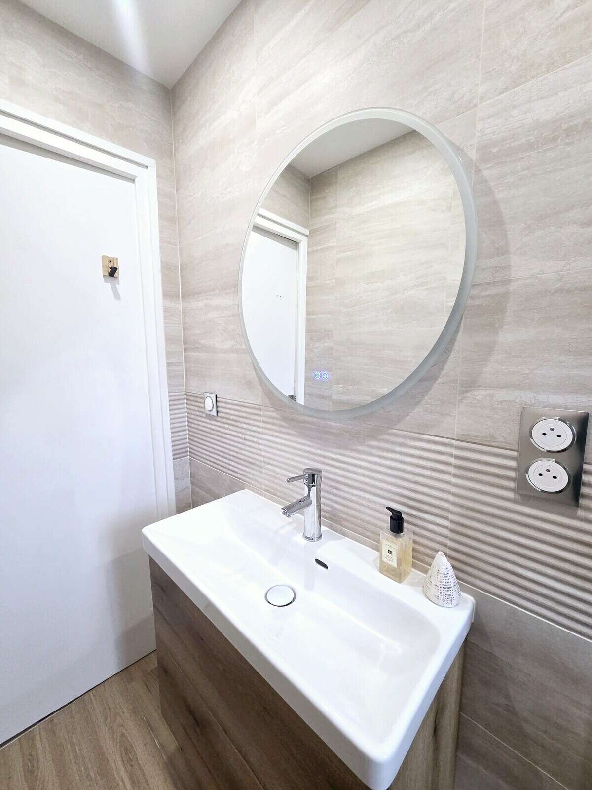 Salle d'eau avec douche spacieuse et Miroir éclairé